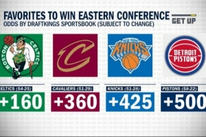 东部冠军赔率:凯尔特人+160居首 骑士+360第2 尼克斯3 活塞4